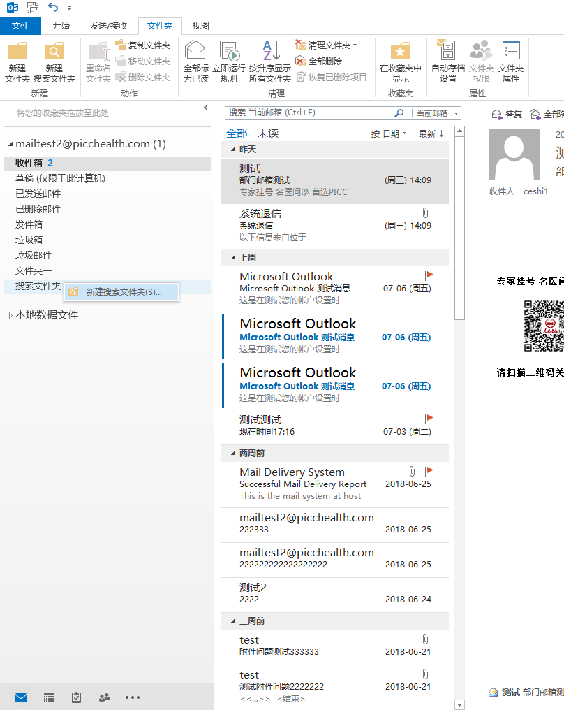 选择“新建文件夹”即可。如图,想在主目录创建一个与“收件夹”等平级的文件夹test,只需选择“新建文件夹”,并取名test即可。