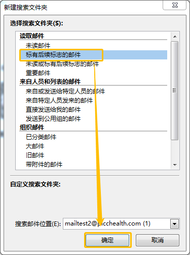 选择【标有后续标志的邮件】,或其他选项,点击【确定】
