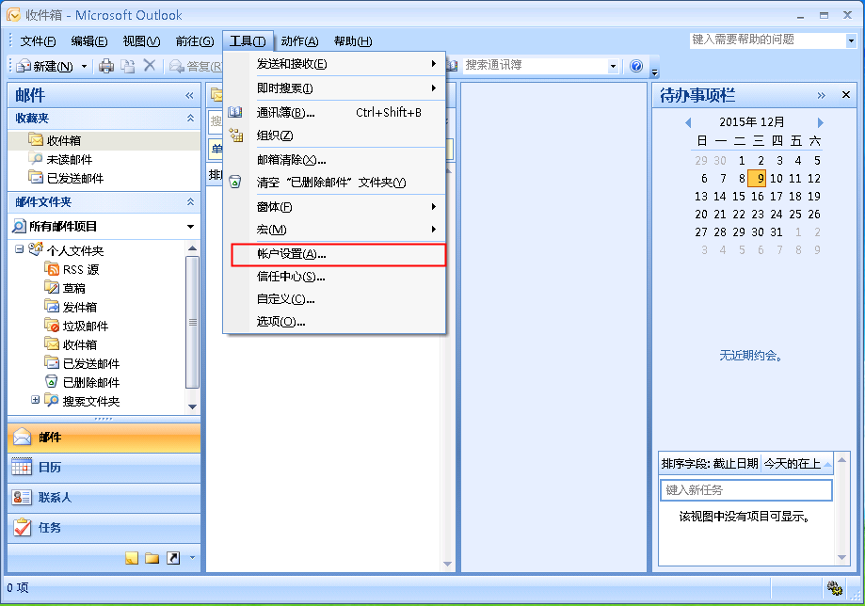 1. 点击【工具】下【帐户设置(A)…】,如下图: