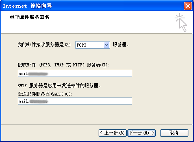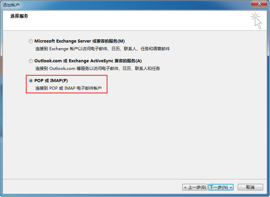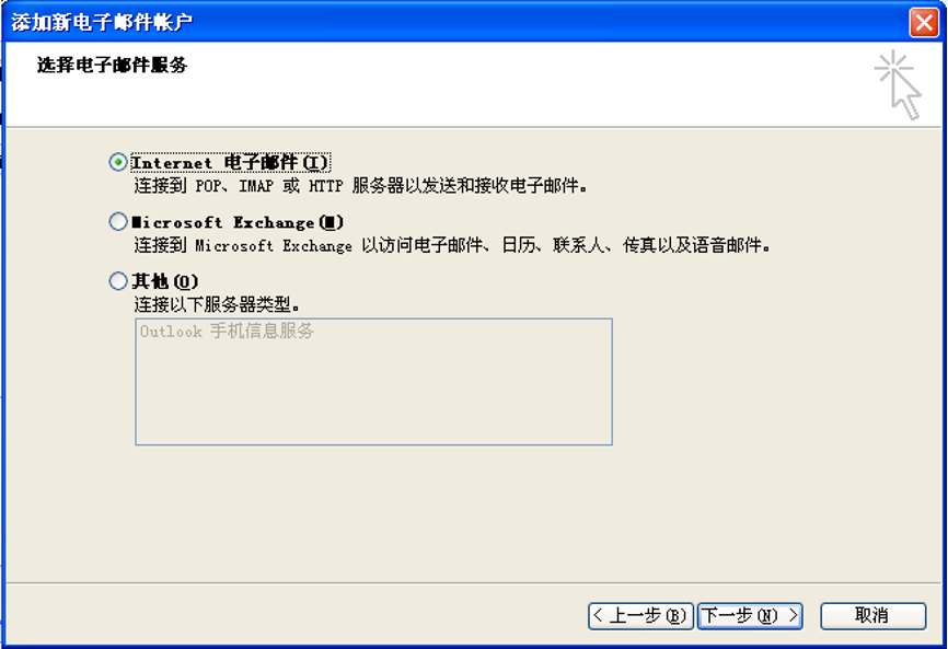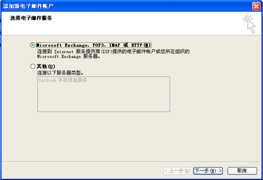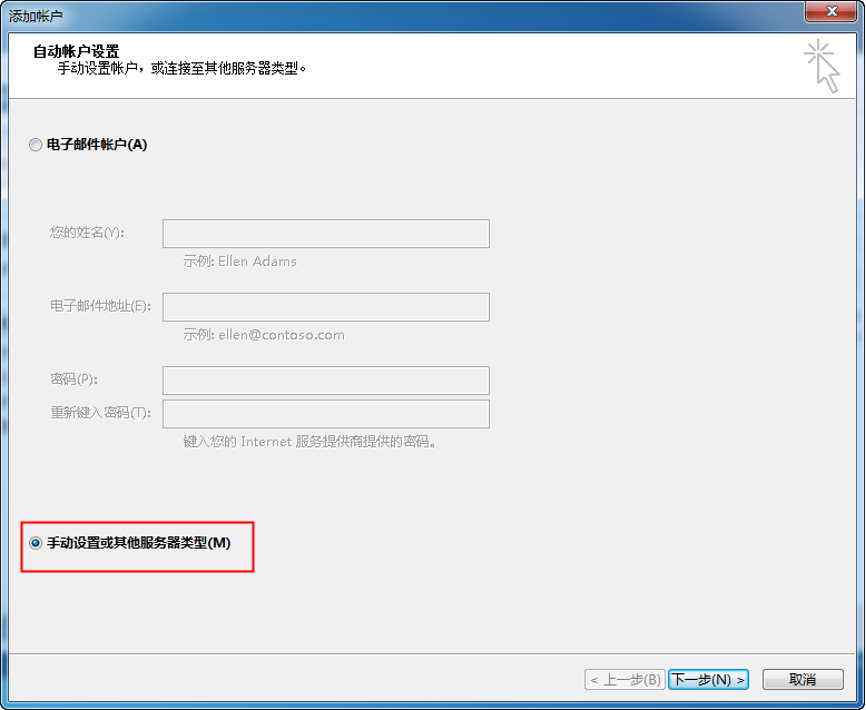 2. 选择【手动设置或其他服务器类型(M)】,点击【下一步】,如下图: