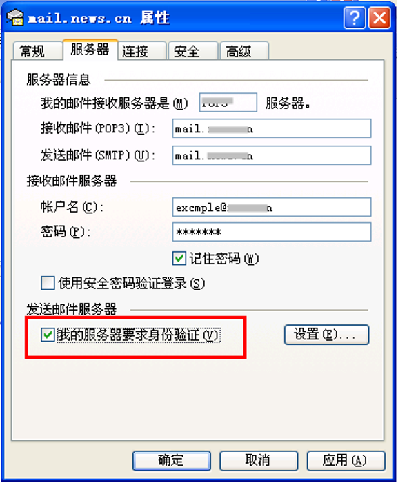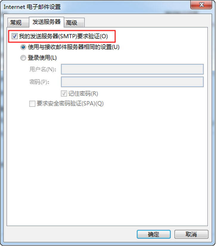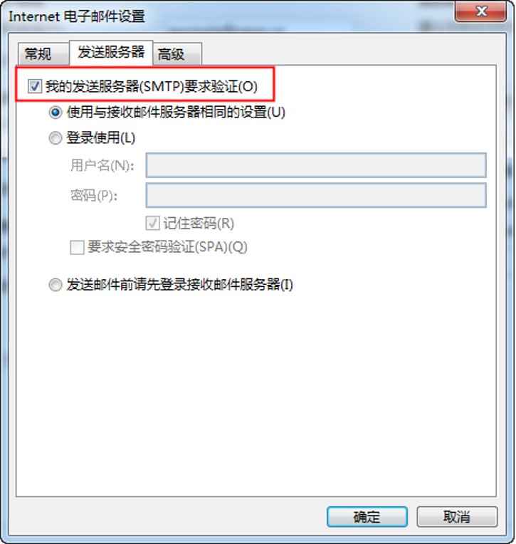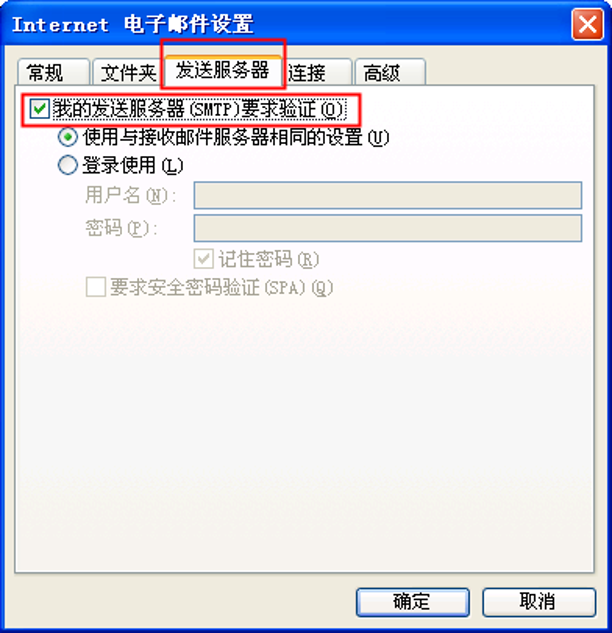 5.2在【服务器】页签下,勾选【我的服务器要求身份验证(V)】,如下图: