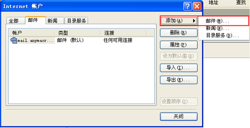 2. 点击【添加】下的【邮件(M)…】选项,如下图: