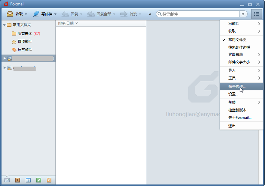 1. 点击【工具】下【帐户(A)…】,如下图: