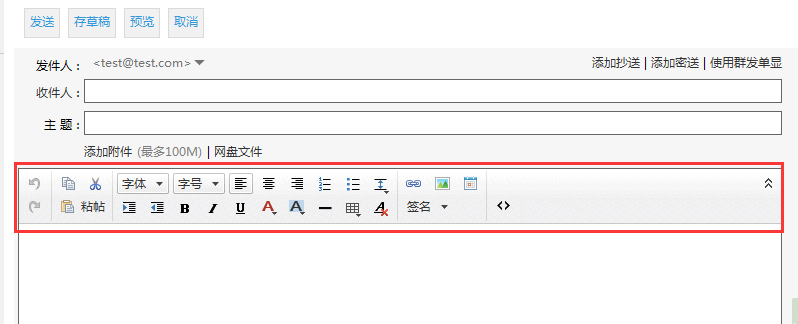 填写抄送人、密送人的email地址,如果通讯录中有抄送人、密送人,可以点击前端的“抄送”、“密送”按钮,从通讯录导入。可填写多个抄送人、密送人,同样以半角英文逗号分隔。