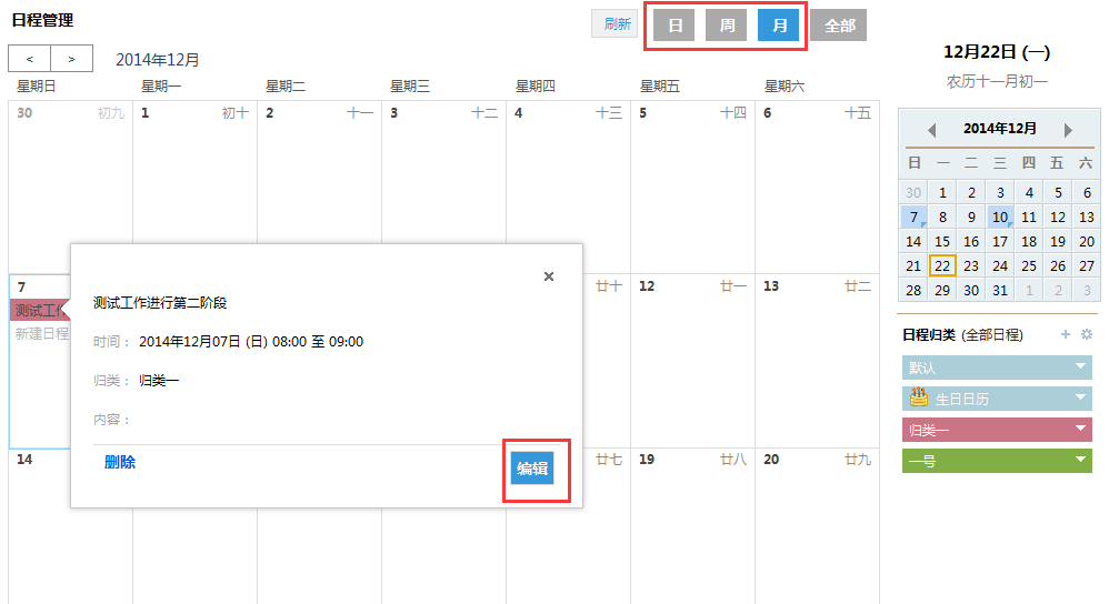 日程管理功能,为您提供了多种查看日程的方式。可以显示全部日程,也可以按照日、周、月显示日程。